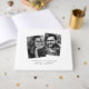 Livre d'or minimaliste mariage avec un simple arrière - plan blanc, 2 photos de la mariée et du marié, leurs noms, et le texte 's'il vous plaît signer notre livre d'or'.