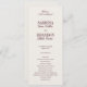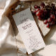 This elegant single-panel design features a deep wine-red background with crisp ivory text, creating a timeless and romantic look. Perfect for classic, modern, or formal weddings, this program offers understated luxury and effortless sophistication. Personalize the text with your own names, date, location, and ceremony details to make it truly yours. Designed to coordinate with the SABRINA Wedding Invitation Collection, this template ensures a cohesive and elegant stationery suite across your entire event.