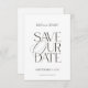 An elegant Save the Date wedding card featuring refined serif typography in a modern classic style. Designed to announce your wedding date with timeless sophistication, this card is perfect for formal, minimalist, and black-and-white wedding themes.