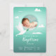 Celebrate your son's sacred baptism with this beautiful and modern invitation. Featuring a serene teal background and a graceful white dove carrying an olive branch, this design evokes peace and new beginnings. The space for your baby's photo adds a personal touch to this special announcement. Perfect for a baby boy's christening ceremony, this invitation will set a loving and elegant tone for your guests.