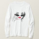 Make a bold style statement with this stylish women’s long sleeve T-shirt featuring a chic illustrated girl wearing sunglasses and striking red lips.