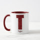 Enjoy a stylish touch of sparkle with this modern glitter monogram mug. The bold glitter-style initial pairs beautifully with a personalized name in a clean, minimal layout. Featuring a matching red handle and interior, this mug is the perfect blend of trendy and elegant. Makes a thoughtful personalized gift for Christmas, winter holidays, birthdays, teachers, coworkers, or anyone who loves modern glitter designs.