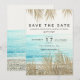 Photo de plage élégante avec un palmier doré moderne, typographie simple, thème de faire-part de mariage tendance et tropical.