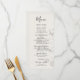 Menu simple, taille : 10,2 cm x 23,5 cm, papier : Signature mat