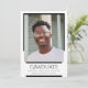 Annoncez votre prochain diplôme avec des photos préférées et ce design minimaliste moderne avec un style en titre tendance. Utilisez le dos pour afficher des photos et/ou des détails de célébration supplémentaires.