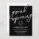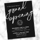 A sleek and modern postcard invitation designed for a business grand opening, product launch, or brand event. The design features a bold black background with crisp white fonts for a clean, high-contrast look that instantly stands out.