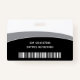 Represent your business in style by supplying staff with with modern and professional identification badges. Uploading your company logo, an employee photo, and your security barcode is easy and quick. Using the templates for your company name, employee name, job title, department/team/division, employee ID#, and expiration date is simple and straightforward. The black, gray and white design is classic yet trendy. This name badge provides security for your company and staff, while at the same time presenting corporate branding with a stylish appearance.