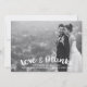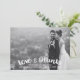 Amour et merci modernes cartes photos mariages avec un script blanc incurvé sur le devant. Il y a d'élégantes rayures roses rousses sur le dos. Ajoutez facilement votre photo et votre texte personnalisés.