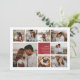La carte de collage de photos de Noël moderne présente huit photos disposées dans une grille, avec votre message de vacances personnel et les noms en blanc sur fond rouge canneberge. Un design simple et minimal qui met en valeur vos photos préférées. Le verso des cartes présente un motif de flocon de neige rouge foncé et blanc.