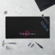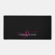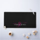 An elegant modern minimalist style monogrammed desk mat with a sans serif name and elegant hot pink swash script initials on black desk mat. For home or office.