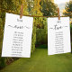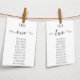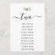 In the upper part, there is the table number written in a handwriting script and the word Table above, in smaller caps (hand letters). Under them, there are the 10 guest names, in similar hand letters. The background is white, all text is black.