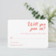 The friendly script headline adds warmth, while the minimalist layout keeps the card elegant and uncluttered. Response options are clearly arranged to make replying quick and simple for guests.