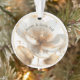 A gorgeous minimalist white and gold color wedding ornament with the name of the bride and groom, and wedding date.