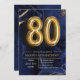 Modern Navy Blue and Gold 80th Birthday Invitation