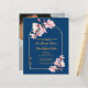 Elegant double-sided wedding invitation featuring blush pink magnolia florals on a rich navy blue background with a luxurious gold arch frame on the front, and a customizable photo back for a personal touch. Perfect for classic, modern, and romantic weddings. Personalize with names, date, venue details, and your favorite engagement photo. Ideal for fall, winter, and evening weddings. Matching Save the Date, RSVP, details cards, and full wedding stationery suite available.