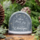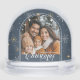 Celebrate the season with a snow globe that captures your favourite holiday moment. This design features delicate snowflakes and a custom Christmas greeting on a deep navy blue snowflakes background, with space on the back for a treasured family photo and name. A thoughtful keepsake for any family holiday display, this globe is customizable to reflect your unique style. Perfect for heartfelt gift or cozy home decor.