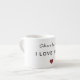 A modern personalized Valentine espresso mug featuring a handwritten name, the message “I Love You,” and a minimal heart accent on a white background. Designed with a sleek, contemporary aesthetic, this specialty mug is perfect for espresso lovers, morning rituals, and stylish gifting. A thoughtful Valentine’s Day or anniversary gift with a modern edge.