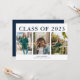 Celebrate their graduation with this navy blue three photo modern graduation announcement card. Customize with three senior photos, name and the name of their school. This class of 2021 graduation announcement card reverses to a solid navy blue background and can be used for a guy or girl.