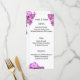 An elegant wedding menu card featuring a pretty pink floral design on a fresh white background. Perfect for summer receptions, this design adds a modern floral flair to your table setting.