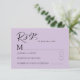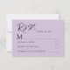 This boho-inspired RSVP card features original watercolours of roses in soft blush pink and romantic purple tones. The delicate floral artwork beautifully complements a purple and pink rose wedding suite while the modern script “RSVP” heading adds a stylish touch. Practical response options and guest count lines make it both functional and beautifully refined for a romantic garden-inspired celebration.