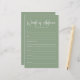 Douchez votre maman-to-be préférée avec une sagesse sincère et des voeux de bien-être sur la carte de conseil Baby shower "Modern Sage Oh Baby". Cette carte de conseil simple mais élégante est le moyen idéal pour les invités à offrir leurs meilleurs conseils, encouragements et bénédictions pour les nouveaux parents. Avec son thème moderne, c'est un beau souvenir qui sera chéri longtemps après la fin du baby shower. Qu'il s'agisse d'une mère pour la première fois ou d'un parent chevronné, la carte "Modern Sage Oh Baby" fournit une façon réfléchie pour les proches de partager leur sagesse et leur soutien pendant ce nouveau chapitre passionnant.