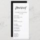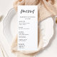 This minimalist wedding menu features clean typography paired with modern script lettering for a timeless and elegant look. Designed to showcase appetizers, entrees, and desserts, this modern wedding reception menu complements classic, minimalist, and black-and-white wedding themes beautifully.