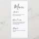 Add a refined touch to your reception tables with this minimalist wedding menu card featuring an elegant black-and-white design and romantic script typography. The stylish “Menu” heading paired with delicate heart accents creates a sophisticated yet warm presentation for your wedding meal.