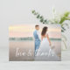 Merci à vos invités d'une manière qui vous est unique avec nos cartes de remerciements personnalisées pour votre mariage ! L'avant présente une couche calligraphique manuscrite tendance que vous pouvez repositionner et recolorer pour compléter parfaitement votre photo mariage préférée. Personnalisez facilement le modèle avec vos noms et votre date de mariage. Sur le dos, vous avez de l'espace pour ajouter une autre photo chère ainsi qu'un message personnalisé et une ligne de signature. © Kimbellished, LLC