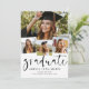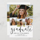 Une invitation moderne de graduation avec le mot "diplômé" sur le devant dans la calligraphie stylisée, plus 4 de vos photos senior préférées. Ajoutez vos propres détails de célébration à l'arrière avec une photo supplémentaire. Il s'agit de la version minimaliste simple en noir et blanc.