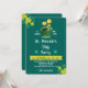 Host an unforgettable 17 March celebration with this modern and stylish St. Patrick's Day party invitation. Set against a deep teal background with vibrant lime shamrock accents, the design features a festive green top hat with golden coins floating above. The clear, easy-to-read layout includes a prominent yellow banner for your location and dedicated sections for all your event details, from traditional Irish food to RSVP info. Perfect for neighborhood get-togethers, pub crawls, or family feasts!