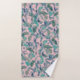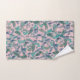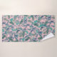 Summer exotic jungle foliage painting, filled with blue and green tones palm leaves, banana leaves, and fern foliage, unique faded leaf shapes watercolor hand-painted greenery pattern, on a soft pink background. A stylish and trendy rainforest illustration, pink and blue tropical design, perfect for a summer botanic nature look decor.