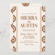 A modern western wedding invitation featuring warm neutral tones and bold southwest-inspired patterns. Perfect for ranch, desert, or outdoor weddings with a semi-formal western feel. Available as professionally printed invitations or a convenient digital file for easy sharing.