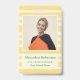 A modern personalized teacher's photo ID badge with horizontal butter yellow stripes.