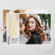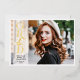 Envoyez ces annonces et invitations simples, à la mode et modernes à votre famille et à vos amis pour leur faire savoir que vous avez obtenu votre diplôme ! Sur le devant, il y a un portrait à fond avec une typographie moderne moderne moderne à la mode GRAD en vrai feuille debout sur une bande verticale de couverture blanche, ainsi que le nom et l'année de classe du diplômé. Le verso de la carte peut être customisé d'une deuxième photo, du nom des parents du diplômé et de l'information sur la cérémonie de remise des diplômes.