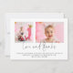 Moderne 2 Photos 1er Anniversaire Amour et Merci. Disponible numériquement et imprimé. Premier anniversaire ou autre âge merci avec un script de style manuscrit pour l'amour et les remerciements et le reste du texte que vous pouvez facilement personnaliser.