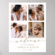 Ce panneau d'accueil mariage moderne présente une calligraphie élégante avec 4 photos. Pour une personnalisation plus avancée de cette conception, cliquez sur le lien Personnaliser supplémentaire pour modifier la police, la taille et la couleur.