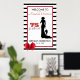 Célébrez votre anniversaire de 75 ans et SENSATIONAL, avec vos invités, avec ce signe de bienvenue moderne et élégant. La silhouette féminine est complétée par un motif à rayures noir et blanc sur l'arrière - plan et un arc en satin rouge. Bon appétit !