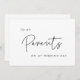 Une carte cadeau simple et minimaliste pour écrire un message personnel et sincère pour vos parents le jour de votre mariage. Entièrement personnalisable avec vos couleurs préférées (texte et arrière - plan). Vous pouvez ajouter un message au dos ou le laisser vide si vous préférez écrire votre message à la main plus tard.
