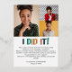 Célébrez votre jalon avec cette carte de faire-part de graduation informelle, ornée d'une feuille d'or exquise pour une touche de luxe. Ce faire-part moderne et amusant présente une photographie à fond sur le devant, avec une superposition GRAD Twenty24 en feuille d'or véritable. Le dos de la carte contient 3 images supplémentaires, le libellé coloré "I'did it!" et le texte de faire-part personnalisable dans une police moderne propre.