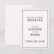 Elevez votre décor mariage avec ce chaise-tag sophistiqué, parfait pour réserver des places pour des invités spéciaux. Avec l'expression "Ce siège est bien réservé à la Mère de l'Épouse", ce design incarne l'élégance intemporelle de l'esthétique "de l'ancien argent". Idéal pour des décors mariages luxueux et classiques, cette étiquette de chaise ajoute une touche personnelle et raffinée à votre célébration.