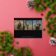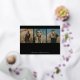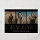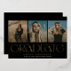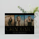 Ce faire-part moderne de trois diplômes de photographie présente une élégante typographie "diplômée" en feuille d'or surélevée avec trois photos sur un arrière - plan noir. À l'arrière il y a le texte d'invitation pour la fête de remise de diplômes / open house qui peut également être supprimé si pas nécessaire. Les couleurs Arrière - plan et texte sont personnalisables. Ce design simple mais élégant permet vraiment à vos photos de briller en gardant les détails minimes.