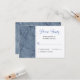 Simple et sophistiqué, le marbre bleu et blanc look RSVP, carte réponse. Contient des éléments mariages correspondants, mais peut être utilisé pour n'importe quelle fonction. Pour effectuer vos modifications, sélectionnez le lien "Personnaliser ce modèle" pour entrer vos propres informations. Si vous devez effectuer des ajustements, cliquez sur le bouton "Cliquez pour customiser plus loin". Assurez-vous de bien vérifier l'aperçu car CE QUE VOUS VOYEZ EST CE QUI EST IMPRIMÉ ! Pour obtenir de l'aide sur le design ou le placement, cliquez sur le lien "Demandez au concepteur".
