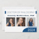 Une carte de faire-part photo de doctorat avec trois photos, le nom du diplômé et l’année de cours. La carte est décorée en blanc et bleu. Ajoutez simplement vos photos et vos informations, ajoutez ces annonces à votre panier et parlez à tout le monde de cette réalisation majeure. Moderne Blue PhD Photo Faire-part de graduation de 2023 Conception de jour férié | ©Melissa Patton - Designer