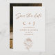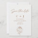 Moderne Brown Line Floral Enregistrer la carte Date Modern minimalist enregistrer notre carte de date avec une illustration de ligne de fleurs australienne sur un arrière - plan blanc cassé. Ce design présente également les initiales des couples, la tête d'image de calligraphie moderne et une photo du couple sur le dos.