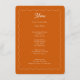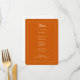 Cette carte de menu moderne et audacieuse aux formes arrondies est dotée d'un cadre à vague, d'une police de script d'inspiration rétro et de votre menu du dîner ou du menu mariage sur Burnt Orange arrière - plan. Parfait pour un mariage moderne ou tout autre événement élégant. À l'arrière, vous avez la place pour vos noms et la date du mariage - ou simplement supprimer le texte au verso. Toutes les couleurs de cette carte de menu mariage - arrière - plan, texte et couleur de cadre d'onde - peuvent être modifiées dans l'outil de conception.