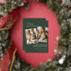 Carte de Noël élégante avec un fond vert mousse, 2 photos à remplacer par les vôtres, bordures en véritable feuille d'or, salutations de saison 'Joyeux Noël', un message personnalisé et le nom de votre famille.