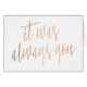 Simple et joli style calligraphie "C'était toujours toi" carte de jour de mariage de la mariée au marié ou du marié à la mariée. **************************************************************************************************************************************************************************************************************************************************************** ************** Note : le cuivre n'est pas un véritable film ********************************************************************************************************************************************************************************************************************************************************************************************************************************************