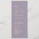 Ce programme de mariage minimaliste chic lavande violet plat est parfait pour un mariage simple. Le design boho minimal présente une typographie bohème rustique unique et élégante, dans une couleur violet clair et poussiéreuse. Inclure le nom de la mariée et du marié, la date et le lieu du mariage, le message de remerciement, l'ordre de service, la fête de la mariée et un mémorial optionnel "en mémoire d'amour".