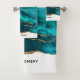 Serviettes personnalisées au style abstrait. Illustration de la pierre d'agate turquoise avec des couches de nuances variées. Un faux ruban de parties scintillant d'or court entre les couches de couleur. Design moderne et élégant.
