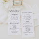 Élégant programme de mariage avec un style typographique moderne noir et magnifique : une combinaison de calligraphie et de lettrage serif. Personnalisez le devant du programme de mariage noir et blanc avec vos noms, la date et l'emplacement du mariage et l'ordre de la cérémonie. Le programme inverse pour afficher une liste de votre mariage.